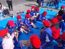 とてもよい天気になりました。今日は栗源小学校のすぐ目の前で、「栗源のふるさといも祭り」が開催されています。本校6年生が「花笠音頭」を披露させていただきました。