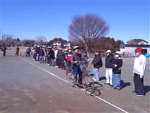 自転車の交通ルールを確認した後、グラウンドのコースで実際に自分の自転車に乗りました。