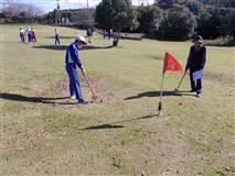 4日(火)6年生は、栗源地区の先輩方と一緒に、グラウンドゴルフをしました。