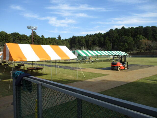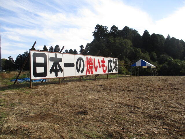 来る11月16日(日)に「第35回栗源のふるさといも祭り」が開催されます。現在、着々と準備が進んでいる様子が、目の前にある栗源小学校からよく見えます。子どもたちもフェンスの向こうに見えるテント群や「日本一の焼いも広場」という看板にワクワクしています。