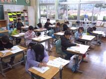 書き初め会は12月に練習会を行い、今日が学校での本番。1年「お正月」2年「元気な子」3年「ゆき山」4年「初もうで」5年「美しい空」6年「新春の朝」が課題です。1・2年は硬筆で、フェルトペンを使います。どの子も、練習会よりもさらに上手になっていました。冬休みの宿題にもなっていたので、練習を重ねたのでしょう。文字を書くということは、こつをつかむのが早くて上手な子もいますが、やはり最後は練習を重ねる努力なのだなと思いました。作品は、しばらくの間展示して保護者の方にも観ていただくことになっています。