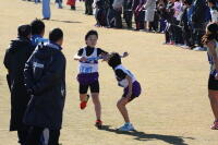 途中から多古駅伝名物の風が吹き始め,逆風の中を走らなければならない場面もありましたが,「○○,がんばれ~!」の仲間の応援の声で,グンッと走るスピードが上がります。チームの応援に背中を押されて,力を出し尽くしてしまったのでしょう,たすきを渡すと同時に地面にへたりこんでしまう子もいました。もちろん栗小の職員がすぐに駆けつけますが,すばやく仲間の子どもたちが駆け寄り,肩を支えていました。