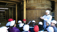 工場の見学では,もろみタンク,小麦を炒るところ,昔ながらの木桶,もろみをしぼるところ,出荷するところなどを詳しく説明していただきながら見ることができました。