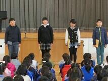 児童会の任命式を行いました。この1年間活動の中心となってくれた6年生と5年生から、5年生と4年生に引き継がれました。4名の新役員からは、それぞれの目標や決意が発表されました。新役員を中心に、児童全員がいろいろなことに精いっぱい取り組んで、学校生活を充実させてほしいと思います。