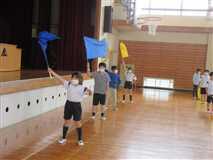 秋季運動会で全校マーチングを行います。今週から練習が始まりました。ダンスの振り付けは、昨年行った2年生が1年生に教えていました。フラッグは4年生が3年生に、鍵盤ハーモニカなどの楽器は各パートに分かれて、昨年度の経験者が新たなメンバーに教えてあげていました。全校で一つのことに取り組むことで、心が一つになり、交流が深まっていきます。