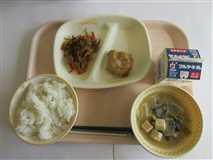今月は「ちばの食育月間」です。今日の給食は、千葉県や香取市の食材をふんだんに使った特別献立「千葉県を味わおう献立」でした。さつま汁のさつまいも、ぶた肉、にんじん、牛乳、ごはんのお米は千葉県産です。鶏のマヨネーズ焼きは香取市産の水郷鶏を使って給食センターで手作りしたものです。