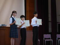 本日1校時より、受賞報告、修了式を行いました。受賞報告、修了式の内容は以下のとおりです。