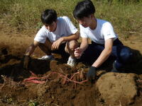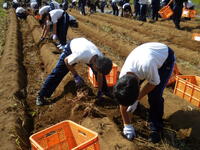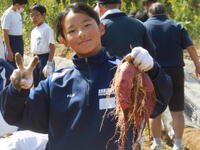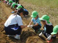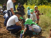 みんなで楽しくお芋掘りを行いました。今年は天候のせいか小ぶりな芋が多いようです。