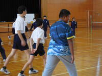 5校時 1年生とのピックルボールを通しての交流会、みんな積極的に話しかけ、楽しく活動することができました。最後に美味しいお団子とお茶をいただきました。
