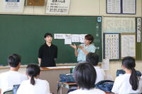 今日から大学2年生の長期学校体験実習で、卒業生の岩井慈子さんが、約2ケ月の間、体験実習を毎週3日間ずつ来校します。本日は、各クラスで自己紹介を帰りの会の時にしてくれました。「生徒の皆さんと仲良く楽しく過ごせるように頑張ります」と笑顔で挨拶をしてくれました。今後とも、どうぞよろしくお願いします。
