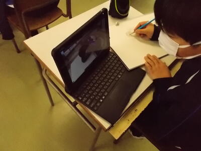2年生の英語では、ヒヤリングでいくつのワードをや文章を聞き取ることができるかに挑戦しました。真剣にビデオの音に集中し、メモをしていました。今までで最高のワードを聞き取ることができたり、9語からなる文章を聞き取ることができる人がいたり、と繰り返し練習することにより、進歩が見られました。何事も積み重ねが大事ですね。