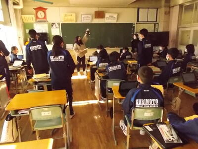 今日は、栗源小学校の岩立先生が研修で1日栗源中学校にいらっしゃいました。1Aで朝の会や帰りの会、給食時間を共に過ごし、各学年の授業を参観していきました。