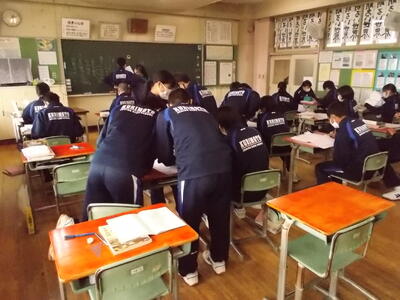 なお、3年生は私立高校の入試があり多くの生徒が受験をしました。クラスに残る人数が少なく、授業によっては2人の授業も… 受験者はよくできたかな?