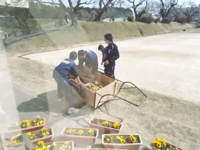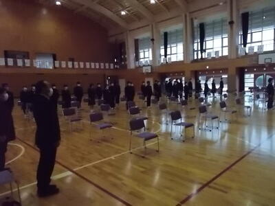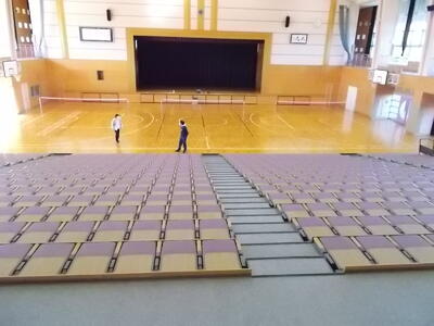 午後は、2,3年生全員で明日の入学式の準備を行いました。卒業式に引き続きなので、生徒も慣れています。あっという間に、きれいな会場ができあがりました。あとは、明日の主役を待つのみです。天気予報も良い天気となっています。新入生がワクワクする式にしていきましょう!