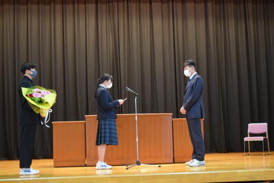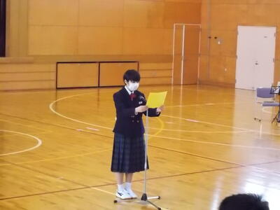 その後、始業式が行われました。生徒を代表して、2名の生徒から新年度の抱負の発表がありました。