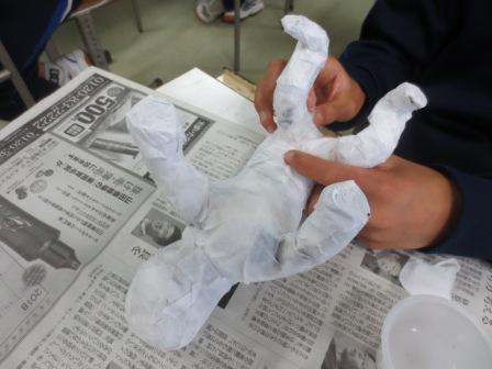 形がだいぶできあがってきていますね。 張り子のように、こまかな作業です。
