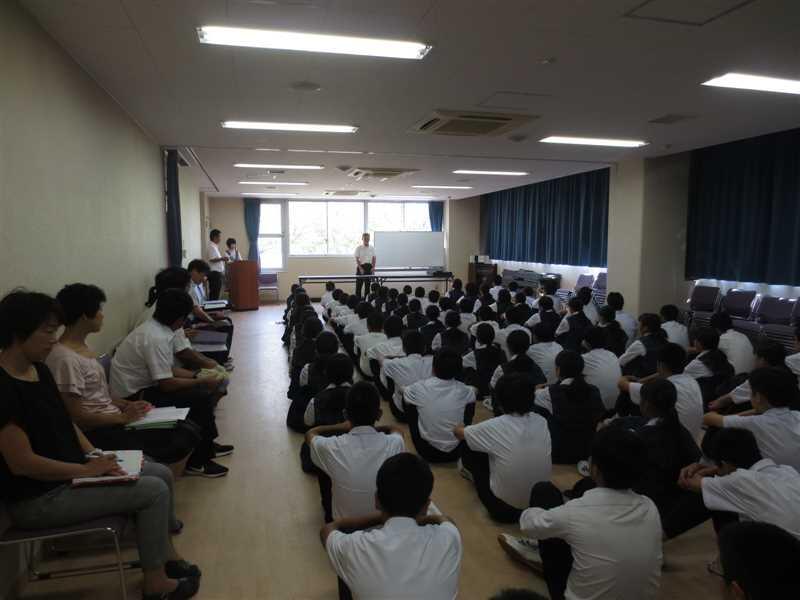 中央で話し出したところ、両端の生徒達が、とても自然に向きを変えて話を聞き始めました。