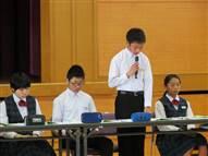 5月16日の5・6校時に生徒会主催の「生徒総会」が開催されました。生徒会長のあいさつ、議長選出・書記任命、報告・議事など、生徒が将来に経験する様々な定期総会と同じような総会次第により実施しました。報告・議事では、生徒会専門委員会の各委員長が活動報告・活動予定、決算・予算を発表しました。人前で説明し伝えるという経験は、とても貴重な体験であり、小規模ならではの利点を生かして、様々な場面でより多くの経験させていきたいと思います。