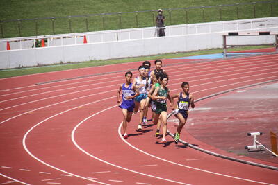 最後に800mに谷田部君が出場。1周目を5,6番手で通過すると、徐々に順位を上げ、残り100mで先頭に出ます。あとは、全国大会出場のための2分00秒5のタイムを目指して走りました。最後、惜しくも2人に交わされ3位(それでも県通信大会から1つ順位を上げました!)でゴールすることができました。タイムは残念ながら全国大会標準記録まであと0.8秒!! 嬉しさと悔しさが入り交じる結果となりました。