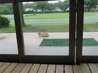 今年の梅雨は、例年に比べて前半から雨の日が続いています。その雨の日の合間を縫って「まさる」がやって来ました。生徒が登校し終わった後に、西側昇降口前に寝そべってくつろいでいました。「まさる」は、自分が生徒たちを見守っていると思っているのかな?・・・・・・・・