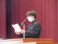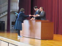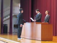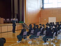 この1年間、生徒の皆さんは学習、部活動、生徒会活動、学校行事など様々なことに精一杯取り組むことができました。これまでの学校生活を振り返りながら、春休みを有意義に過ごしましょう。そして4月から始まる新たな学校生活がより一層充実したものになるよう、新たに目標設定を行い、新学期に向けて準備を進めていきましょう。1年間お疲れ様でした。保護者・地域の皆様、1年間本校の教育活動に御理解と御協力をいただき、ありがとうございました。今後も引き続きよろしくお願いいたします。