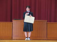 本日1校時より、受賞報告、修了式を行いました。受賞報告、修了式の内容は以下のとおりです。