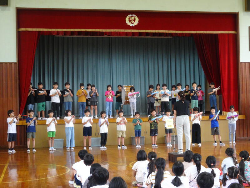 音楽発表会壮行会 投稿日時 : 10/06 瑞穂小学校管理者 10月3日(金)に郡市音楽発表会の壮行会を開きました。本番で発表する、合唱「MUSIC」と合奏「ブラジル」を3,4年生が披露してくれました。一生懸命歌ったり演奏したりしている姿を見て、本番がとても楽しみになりました。 4年生の代表挨拶や児童会代表の励ましの言葉も、大変立派に発表することができました。 Tweet {{options.likeCount}} {{options.likeCount}} {{options.unlikeCount}} {{options.unlikeCount}} 0 コメント