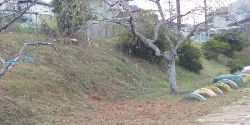 また、校庭の斜面および体育館周り、裏の畑の雑草の草刈りも、「さすが!」という手際のよさで一気に終わらせていただきました。前日までの様子からは、見違えるようになりました。