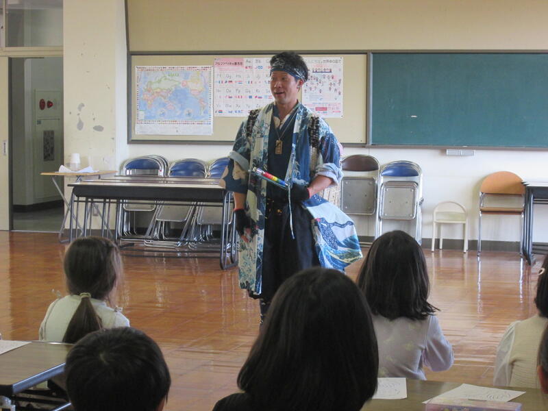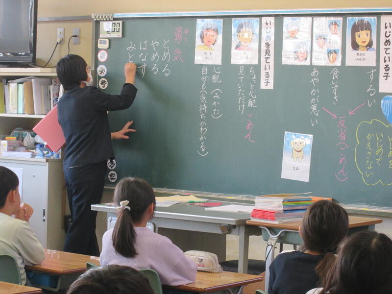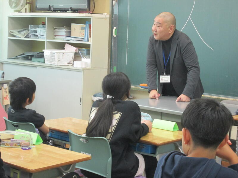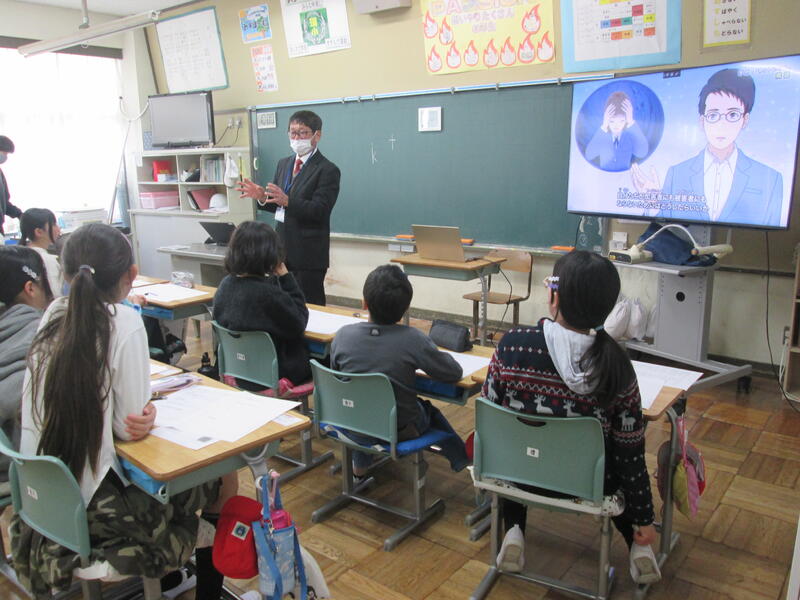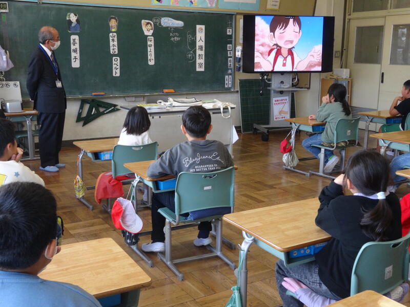 1,2年生は合同で「ええところ」、3年生は「名前・・・それは燃えるいのち」、4年生は「プレゼント」、5年生は「人権について」、6年生は「あなたは大丈夫?考えよう!インターネットと人権」という題材で学習をしました。1,2年生の授業では、特別ゲストとして浦安地区でゴミ拾いの活動をしている「浦治郎さん」も登場し、環境を守ることの大切さを御自身の体験を元に話してくださいました。