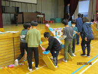 【4年生】自分たちで考えた「ポイント シュート」ゲームをお家の方々と楽しみました。