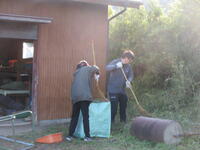 保護者ボランティアのお力を借りて除草作業!