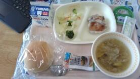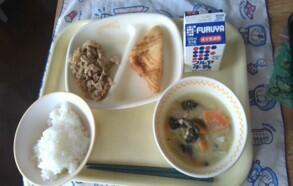 今日の献立は、牛乳、ご飯、チーズはんぺんフライ、ご汁、豚肉のしょうがいためです。チーズはんぺんフライがサクサクしていておいしかったです。