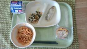今日の献立は、牛乳、スパゲッティナポリタン、シルバーレモン風味焼き、ツナサラダ、お米のタルトです。お米のタルトが甘くておいしかったです。