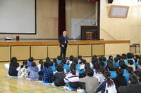 また、生徒指導主任の先生からは「冬休みの過ごし方」についてのお話がありました。冬休み中は、計画的に学習に取り組むこと、しっかりと休んで心と体を整えること、そして交通安全や健康管理に気を付けて安全に過ごすことの大切さが伝えられました。