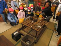 施設の中には、今ではあまり見かけなくなった昔の道具がたくさん展示されており、参加した児童からは