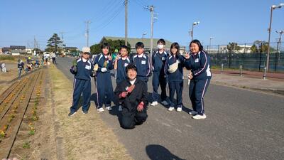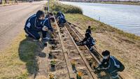 15日(土)に「花植祭」が黒部川周辺で行われました。小見川中学校からもたくさんの生徒が参加してくれました。ありがとうございました。写真は市長さんを交えての記念撮影です。