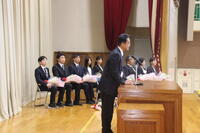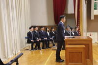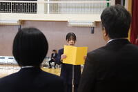 今日は1年生の 猿田理心さん と2年生の 平岡翔太さん が、学年を代表して「1年を振り返って」という内容で作文発表を行ってくれました。二人ともしっかりとこの1年を振り返り、次年度につながる素晴らしい内容でした。