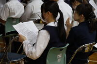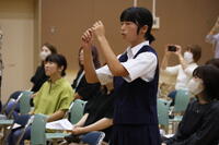 なお、今日は進路説明会の前に、生徒たちが、香取郡市音楽発表会に向けて練習中の合唱曲を保護者の皆様に披露しました。