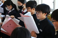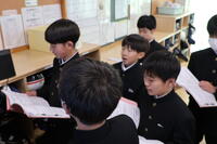 1年生は、「3年生を送る会」や「卒業式」に向けて、合唱練習を行っていました。合唱コンクールの頃よりもさらにレベルアップした歌声が聞こえてきます。