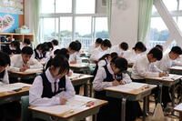 11月20日(木) 投稿日時 : 11/20 Kurishiba カテゴリ:今日の出来事 本日も学校は平常日課でした。3年生は実力テスト2日目となります。日頃の勉強の成果は出せたでしょうか。今日は授業の様子を紹介します。 (3年生実力テスト) 今日のテストは理科と社会でした。引き続き、自分の進路実現のためにがんばってください。 (2年1組の授業の様子) 学校では初任者(1年目の先生)がいると、外部から指導してくれる先生が定期的に来校され、初任者にいろいろなことを教えてくれます。2時間目の2年1組の授業の様子です。