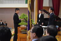 1年代表 相川 文さん(4組)、2年代表 久保木真歩さん(1組)、3年代表 髙岡 聖矢さん(3組)