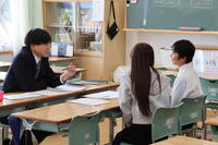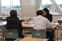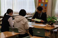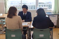 今日の6時間目の様子です。3年生は入試に向けてグループ面接の練習が始まっています。1・2年生は、テスト結果の返却や職業調べなどを行っていました。