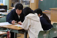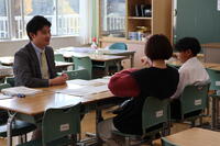 学校では初任者(1年目の先生)がいると、外部から指導してくれる先生が定期的に来校され、初任者にいろいろなことを教えてくれます。2時間目の2年1組の授業の様子です。