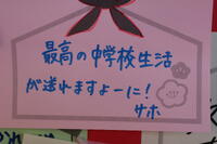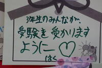 ホームページでも紹介したとおり、今週月曜日に私立入試の集中期間を終え、今日は公立高校の入試倍率が発表されました。ここからは、公立高校の入試本番に向けてひたすら勉強を頑張るだけです。体調管理もしっかりとしながら1日1日を大切にしてください。今日、3年生の教室を覗いてみる、気持ちのこもった入試に向けての掲示物がありました。
