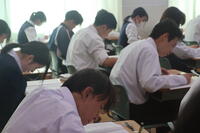 今日は、英語、国語、数学のテストを行いました。明日はもう1日、理科と社会のテストを実施しますので、3年生は明日に備えて今日もしっかりと勉強してください。