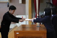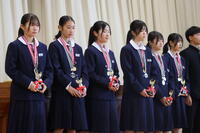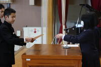 また、冬休み前に実施した「挨拶選手権」の表彰も行い、生徒会長から各受賞者に賞状が手渡されました。