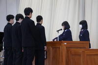 全校集会では、各学年代表の生徒が「1年間の抱負」について発表してくれました。また、冬休み前の全校集会では3学年がインフルエンザのため不在だったので、その時発表できなかった 須藤 葉琥 さんも「1年を振り返って」の作文発表をしてくれました。どの生徒も具体的な振り返りやこれからの目標を話してくれてとても素敵な発表でした。なお、各学年の代表生徒は以下のとおりです。