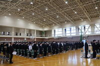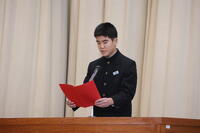昨日お知らせしたとおり、今日は3学年がインフルエンザによる学年閉鎖のため、1・2年生で「冬休み前全校集会」を行いました。学年代表として、1年生は 秋葉航成さん、2年生は 和田望逢さんが、1年間を振り返っての反省についての作文発表をしてくれました。2人とも具体的に4月からの自分自身を振り返り素晴らしい内容の発表でした。