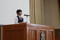 4月7日(火)9名の先生の着任式を行いました。その後の始業式では、2,3年生の代表生徒の新年度の抱負の発表の後、校長先生から本校の学校教育目標である「未来を切り拓く力を身につけた思いやりのあるたくましい生徒の育成~文武両道の教育実践をとおして~」の話がありました。令和8年度のスタートです。