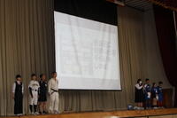 4月13日(月)対面のつどいを開催しました。生徒会長と校長先生の話の後、委員会の紹介、部活動の紹介を行いました。発表は工夫を凝らした分かりやすいものでした。その後、在校生から新入生に記念品が贈呈され、新入生代表からお礼の言葉がありました。新入生は、早く学校生活に慣れてほしいと思います。